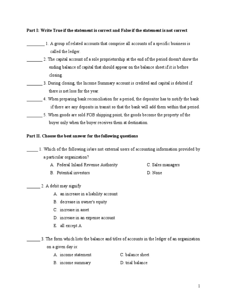 Multiple Choice Questions Pdf Debits And Credits Expense