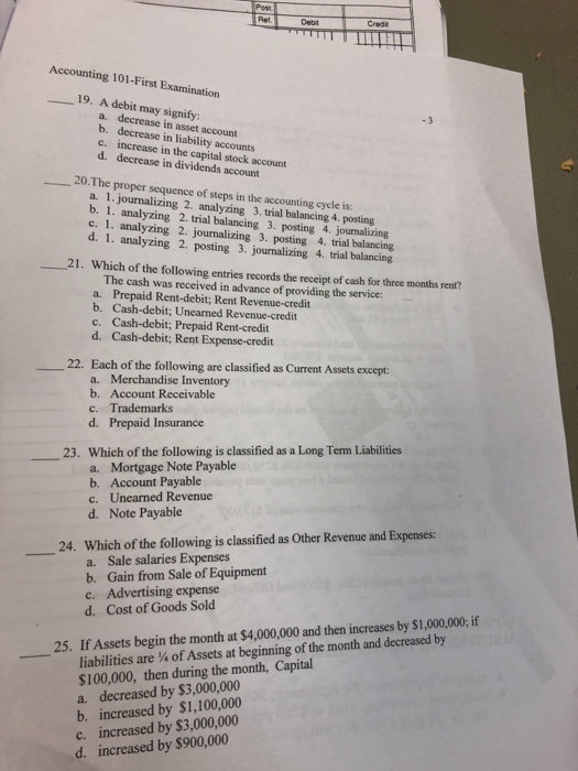 Solved Ret Debit Credt Accounting 101 First Examination 19 Chegg Com